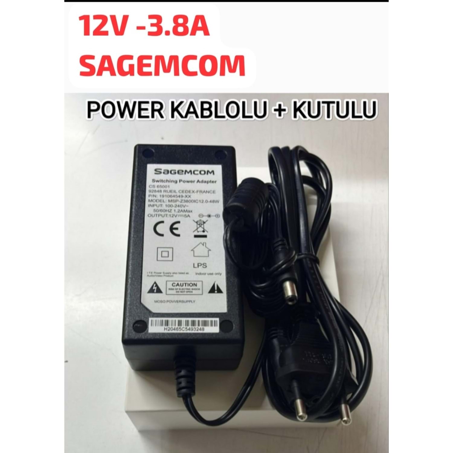 Sagemcom 12V-3,8 A-Max 5 A Adaptör / Power Kablolu + Kutulu