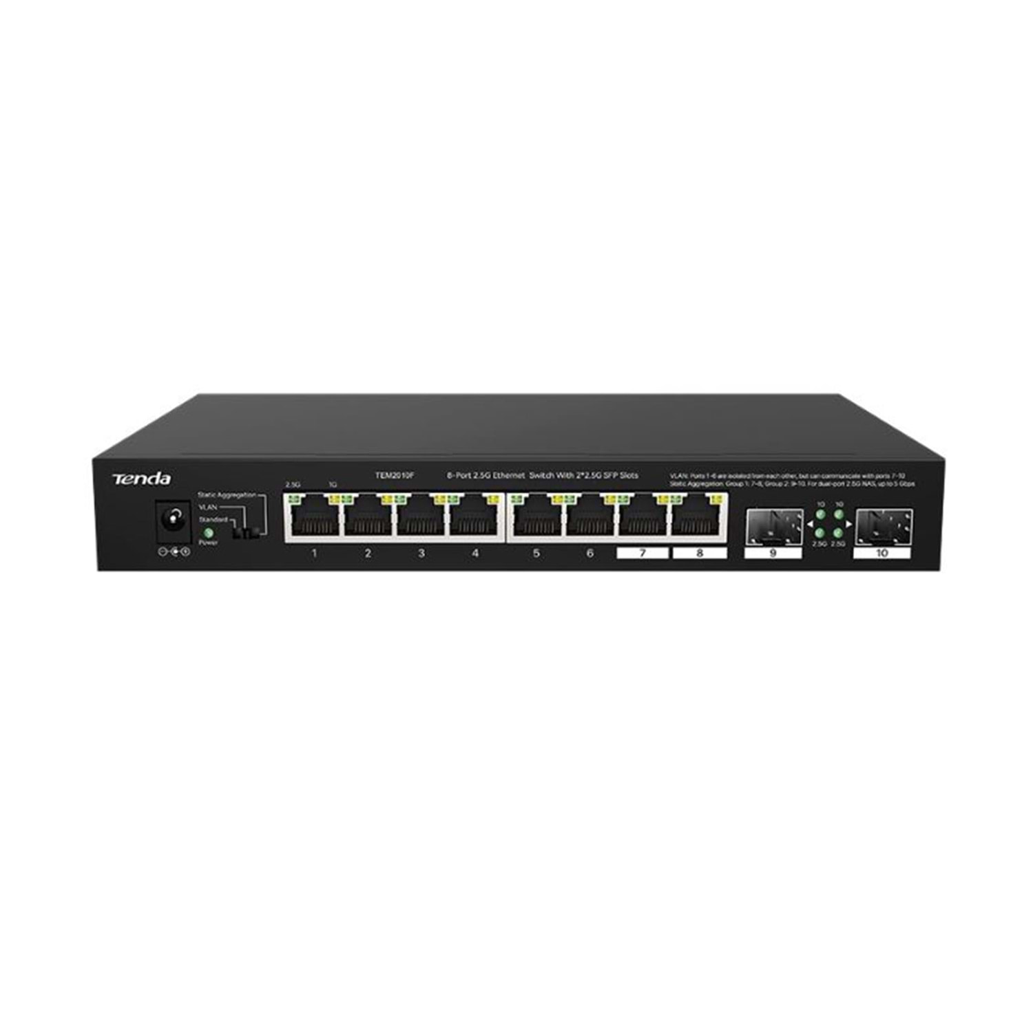 Tenda TEM2010F 8 Port 100-1000-2500 Mbps + 2 Port SFP Switch Çelik Kasa Rack Mount